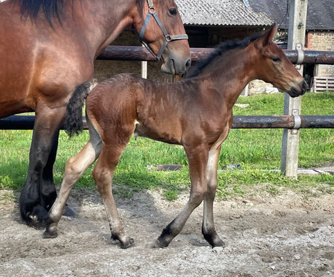 C'est un poulain taillé pour le sport, monté ou attelé. Il est d'une grande souplesse avec de belles allures, le résultat attendu de ce croisement.