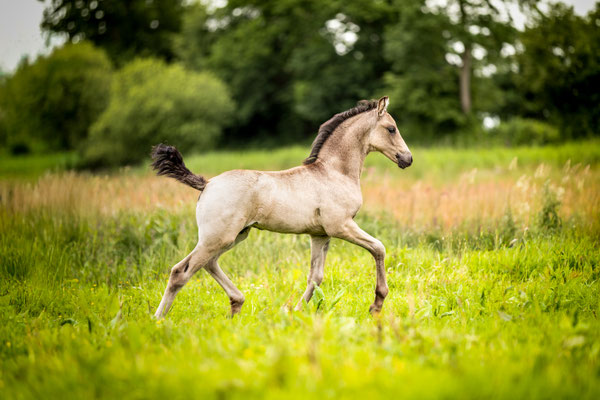 Petrus est né le 26.05.25, c'est un magnifique poulain isabelle qui sera enregistré au studbook WBP. Petrus est un poulain très intelligent et très bien fait, il devrait toiser 1.60m environ.